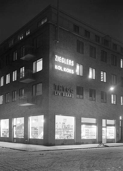 Bland annat Zieglers Kol & Koks i större tegelbyggnad.