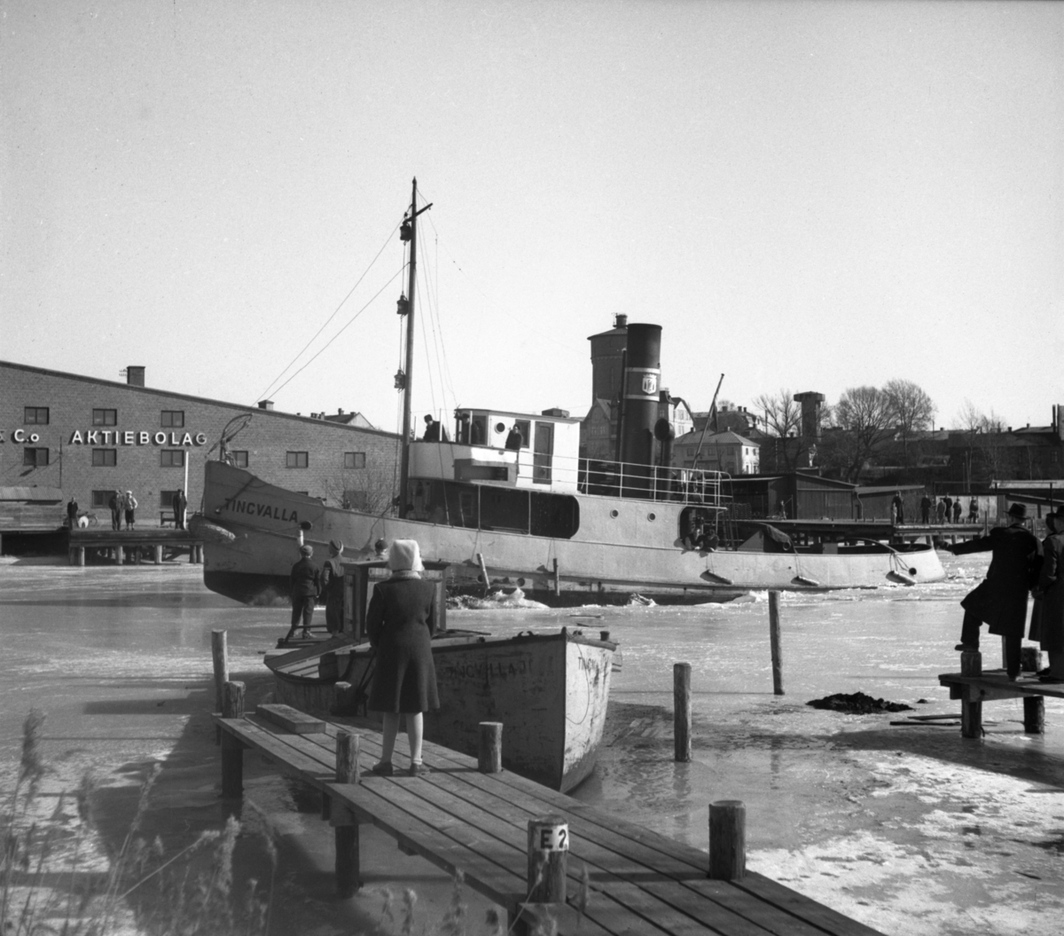 Tingvalla bryter isen i Inre hamn inför årets fraktsäsong våren 1949.