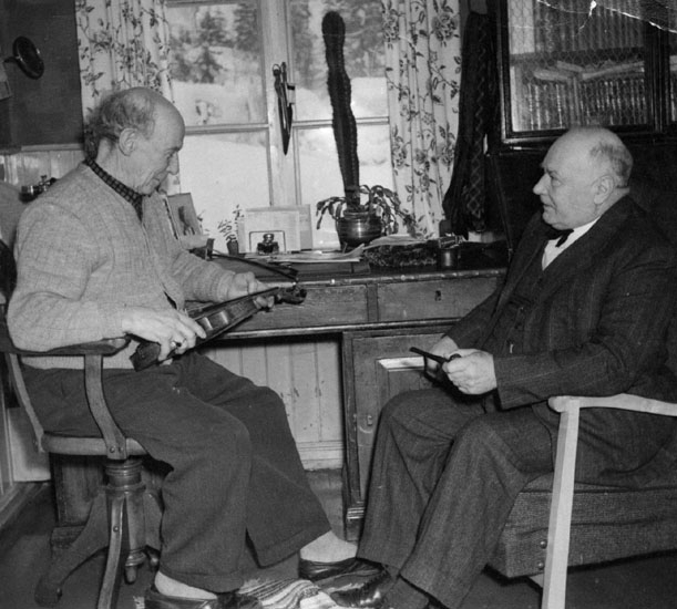 Till vänster: tullstationsföreståndare Olaus Olsson, Röjdåfors med "Porkkalafelan", Halteguttens fiol.
