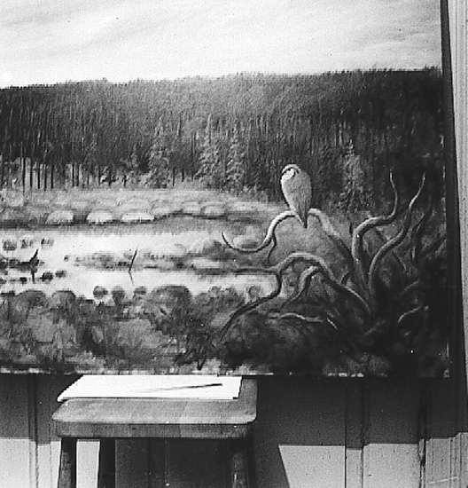 Ensam fågel vid stranden. Målning av Gunnar Bohlin.