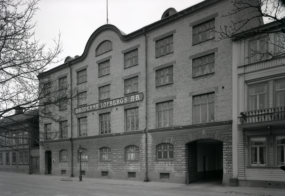 Bröderna Löfbergs företag för import av kaffe och kolonialvaror på Trädgårdsgatan i Viken. Bilden tagen 1941.