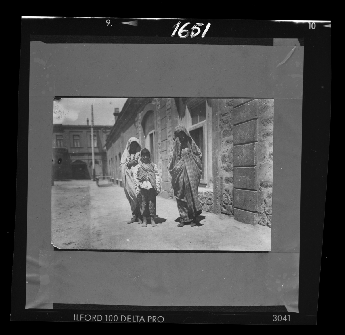 På kuvertet står följande information sammanställd vid museets första genomgång av materialet: Baku. Tiggande Tatarflickor.