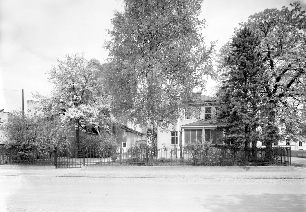 Otto Zieglers villa, vid fototillfället övertagen av Hakonbolaget. En Idyll i hörnet Södra KyrkogatanDrottninggatan på en bild från 1942, som bestod in på 1960-talet innan halva kvarteret revs för att ge plats åt bl a ett nybygge för polismyndigheten.