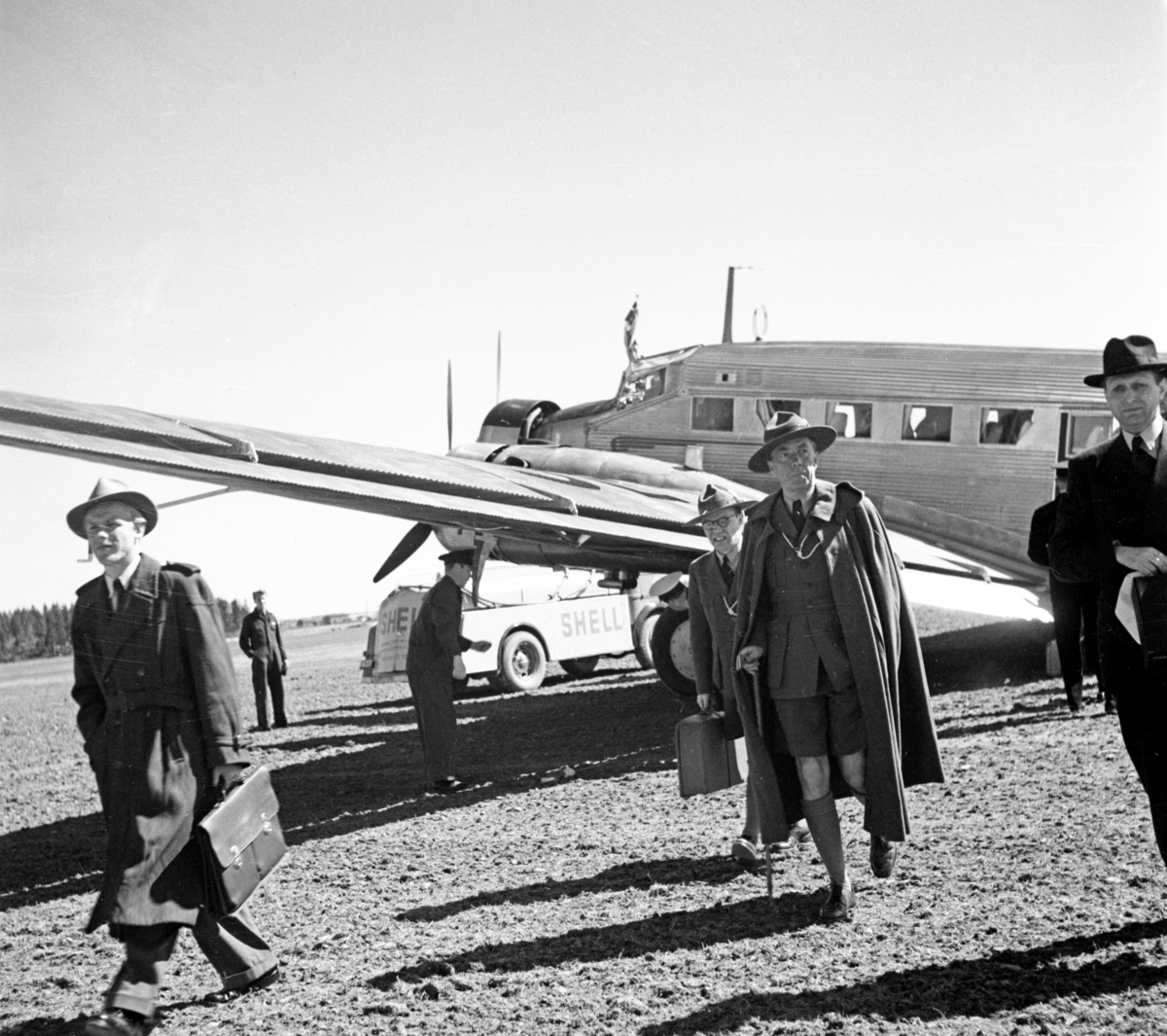 Greve Folke Bernadotte 1946 på Karlstads flygplats. Planet är en Junkers Ju 52.