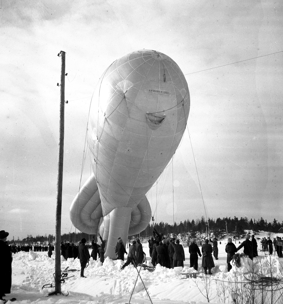 Spärrballong: Tänkt att användas som luftskydd mot lågt flygande plan under kriget.