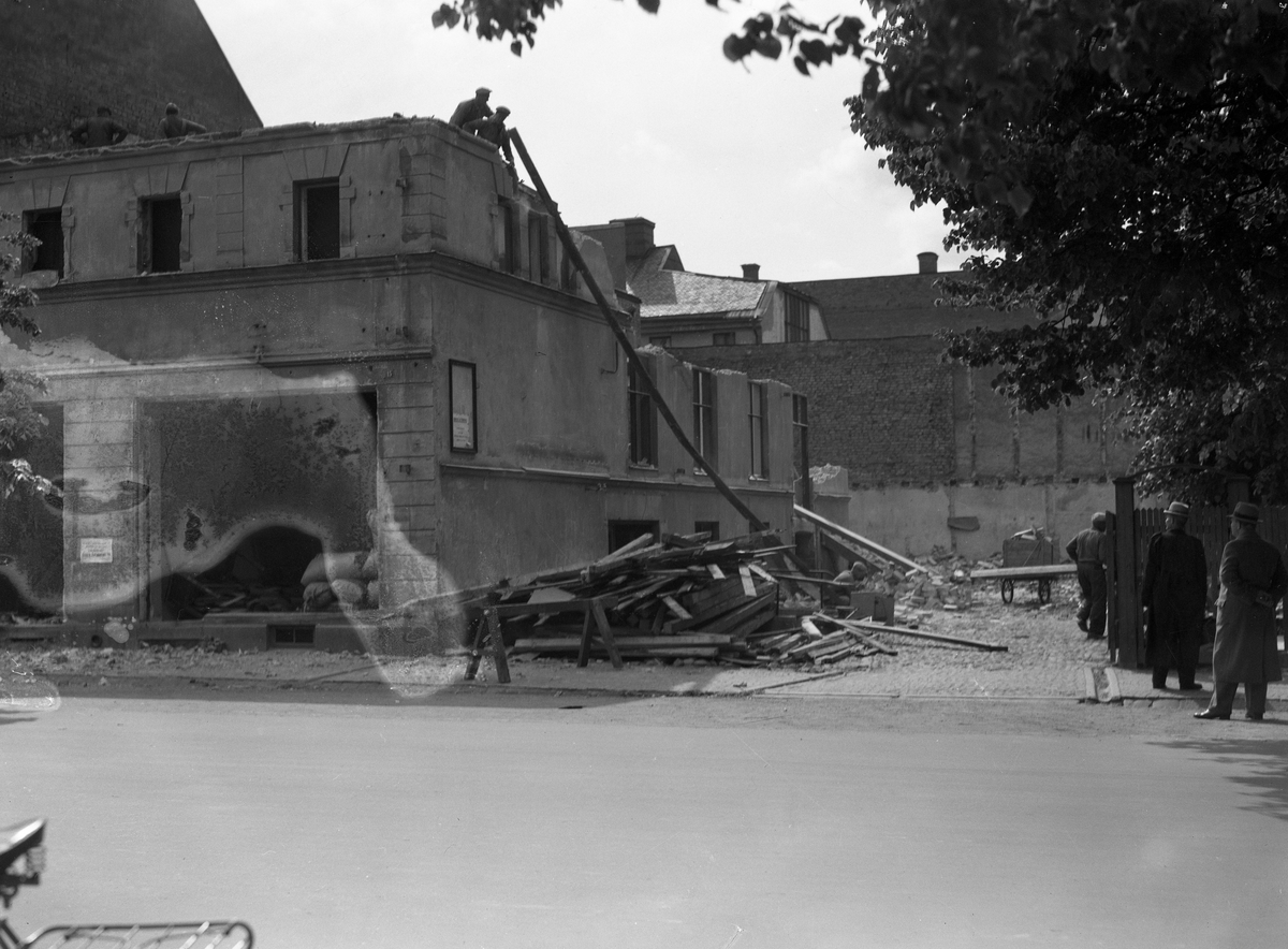 Fredagen 22 december 1905 öppnades Karlstads första biograf, Biograf-Teatern, på Östra Torggatan. I folkmun kallades den för "Beäffs" efter ägaren B.F. Anderssson. Här rivs den 1945 efter att även varit danssalong och läskedrycksfabrik under en tid, och får då ge plats åt VF:s bygge av tidningshus med inflyttning den 12 maj 1946. Fläckigt original.