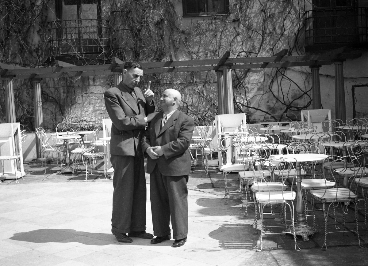 Det danska komikerpare Fyrtornet och Släpvagnen, ( Carl Schenström ("Fyrtornet"") och Harald Madsen ("Släpvagnen"), besöker Karlstad 1941, här på Statts terrass.