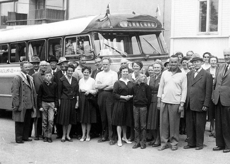 Bror Finneskog, Torsby och "Niittaho-Jussi" Johannes Johansson längst fram t.h.. Längst fram t.v tonsättare Tormod Holth, Grue Finnskog; en namnlös; J.A Henriksson, Östmark; Furuberg; Johan Jönsson, Nyskoga; fru folkskolelärare Andersson, Bjurberget; fru Larsson, Bjurberget; Gunnar Kolthoff, Torsby, Arvid Larsson, Bjurberget; ? norrmän; fru Olsson, N:a Ny; Furuberg, Norge; Åsta Holth, Grue Finnskog; fru Stövi, Norge; fru Furuberg, Norge; chaufför "Kisen" Olsson, Torsby; två namnlösa; pastor Holmqvist, Lekvattnet; ?; Niittaho-Jussi, Nyskoga; två namnlösa; Bror Finneskog, Torsby.