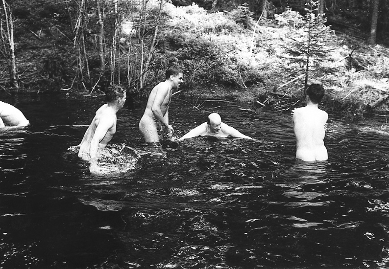 Efter finnbastubadet på Karmenkynna svalkar man sig i den närliggande kvarndammen.