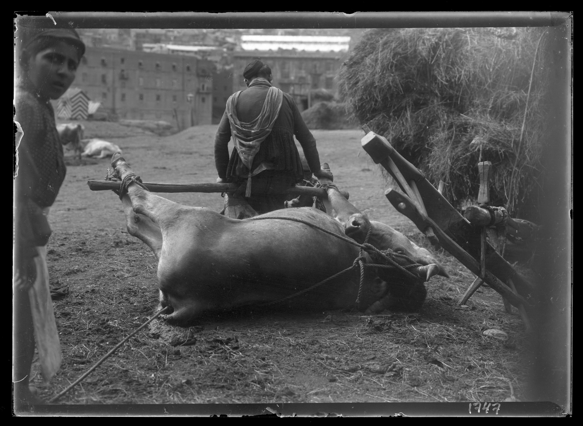 På kuvertet står följande information sammanställd vid museets första genomgång av materialet: Schaksej Vatsehej, med en död buffel.