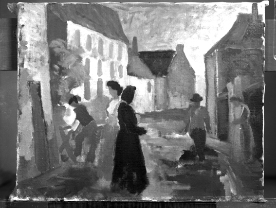 Målning av Erling Ärlingsson föreställande ett antal promenerade personer i stadsmiljö.