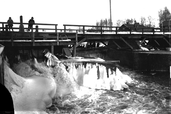 Tre personer på bron över Gunnerudsälven. Finns på den väg som går emellan Karlstad Universitet och Filipstad. En så kallad Kungsväg, det vill säga en av de vägar som först anpassades för hjulburna fordon (om man nu kan kalla häst och vagn för det).