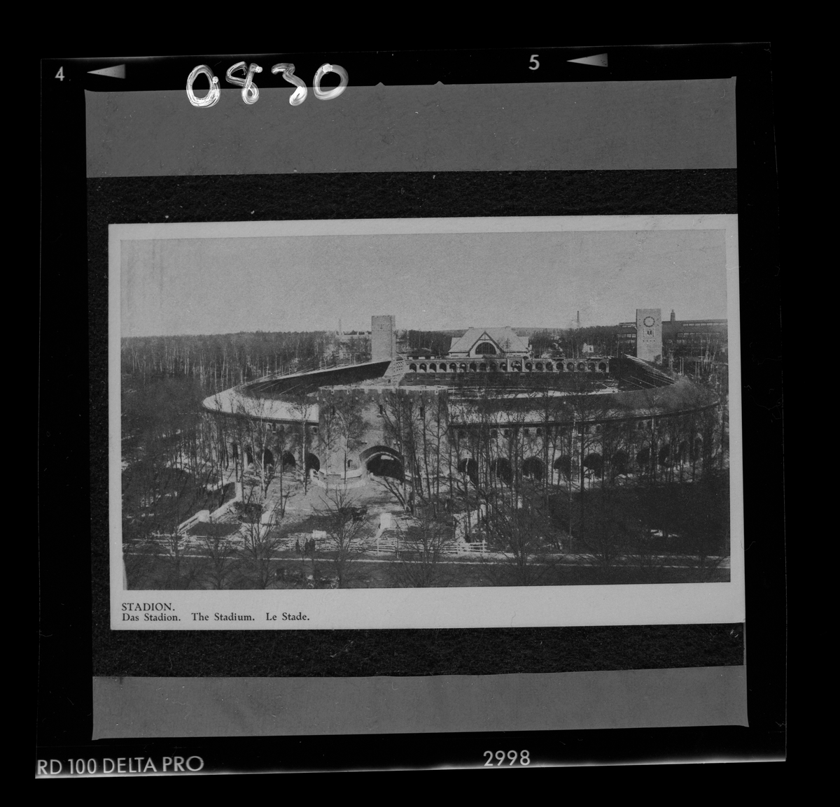 På kuvertet står följande information sammanställd vid museets första genomgång av materialet: Olympiska Spelen. Stadion, officiella.