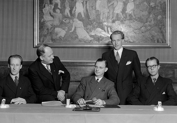 Fem män i presidie.