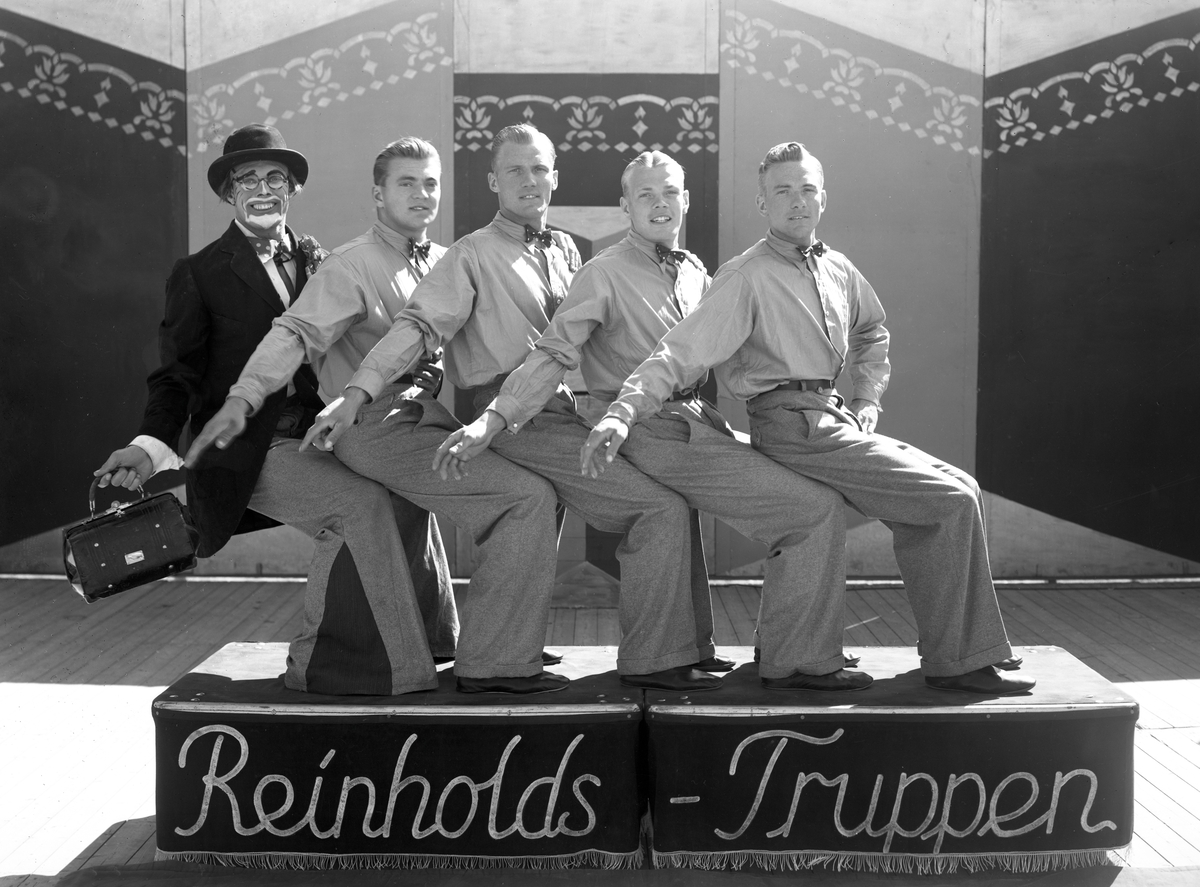 Balansakt av Reinholds-truppen innan föreställningen börjar på en bild tagen 1936.