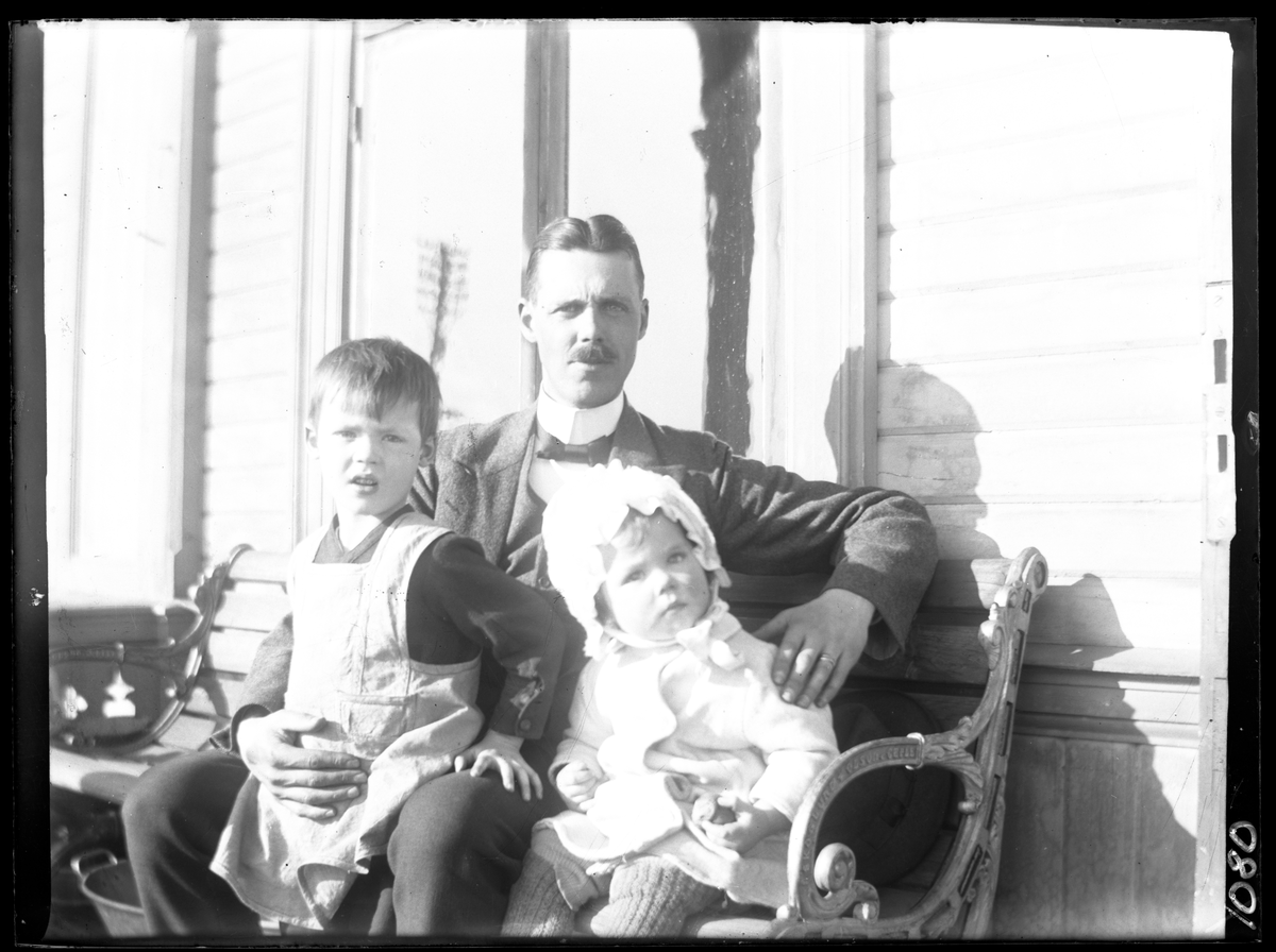 På kuvertet står följande information sammanställd vid museets första genomgång av materialet: Pappa med sina barn. int.
