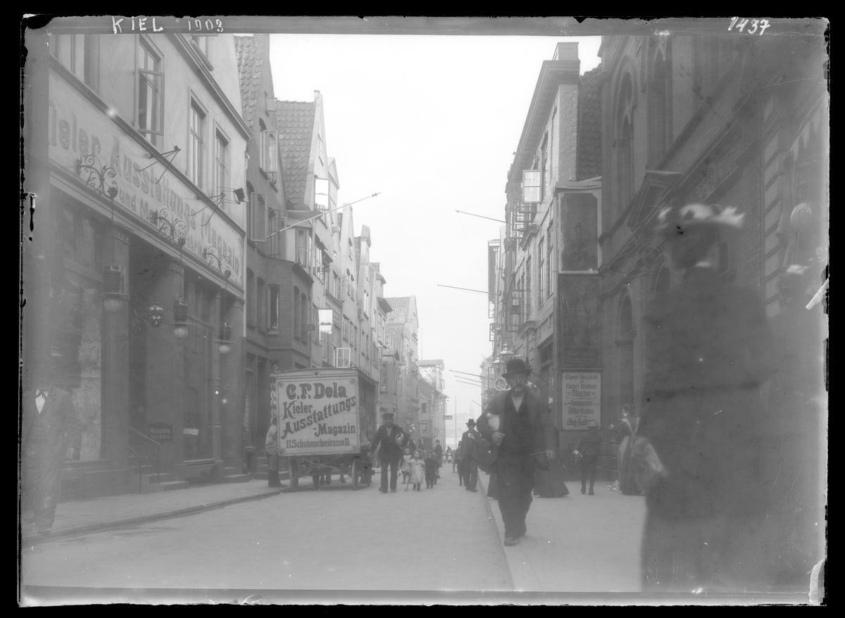 På kuvertet står följande information sammanställd vid museets första genomgång av materialet: Byggnader, affärer.