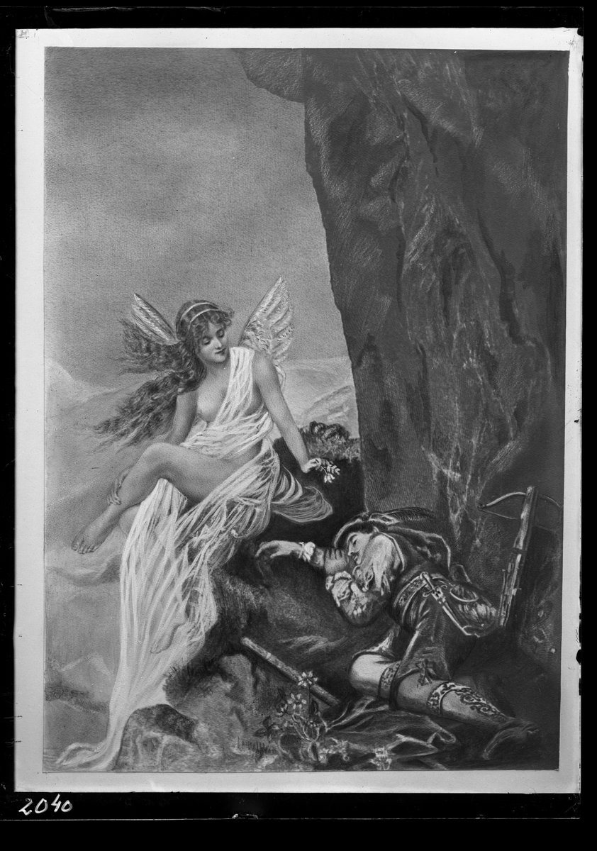 På kuvertet står följande information sammanställd vid museets första genomgång av materialet: Ängel och man.