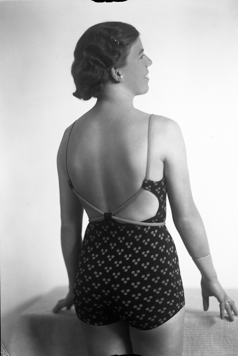 Modell med baddräkt, förmodligen tillverkad i ylle.