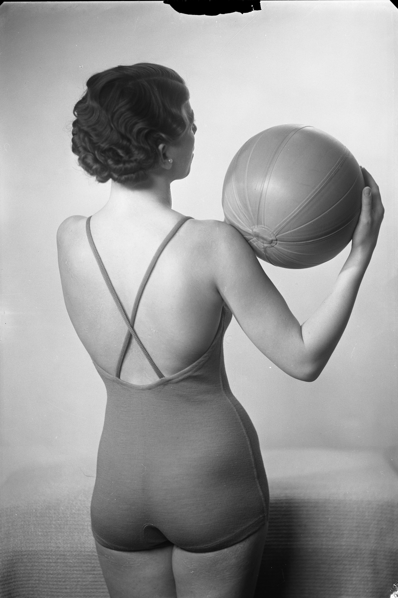Modell i baddräkt, förmodligen tillverkad i ylle.