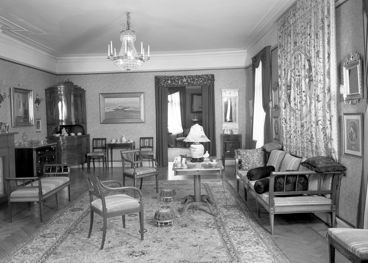 Titel: Hemma hos häradshövding Lundström på Älvgatan 19, dvs Grevegården, 1937. Av bilderna att döma omfattade lägenheten hela övre våningsplanet.