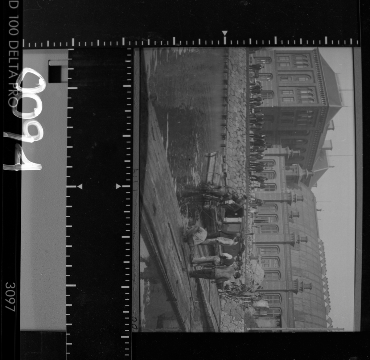 På kuvertet står följande information sammanställd vid museets första genomgång av materialet: Järnvägsstation ? män på brygga.
