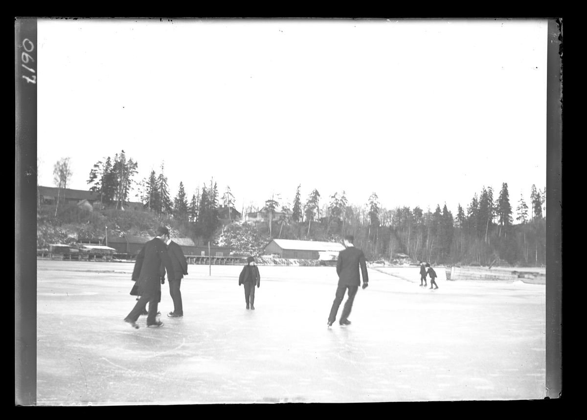 På kuvertet står följande information sammanställd vid museets första genomgång av materialet: Skridskoåkare.