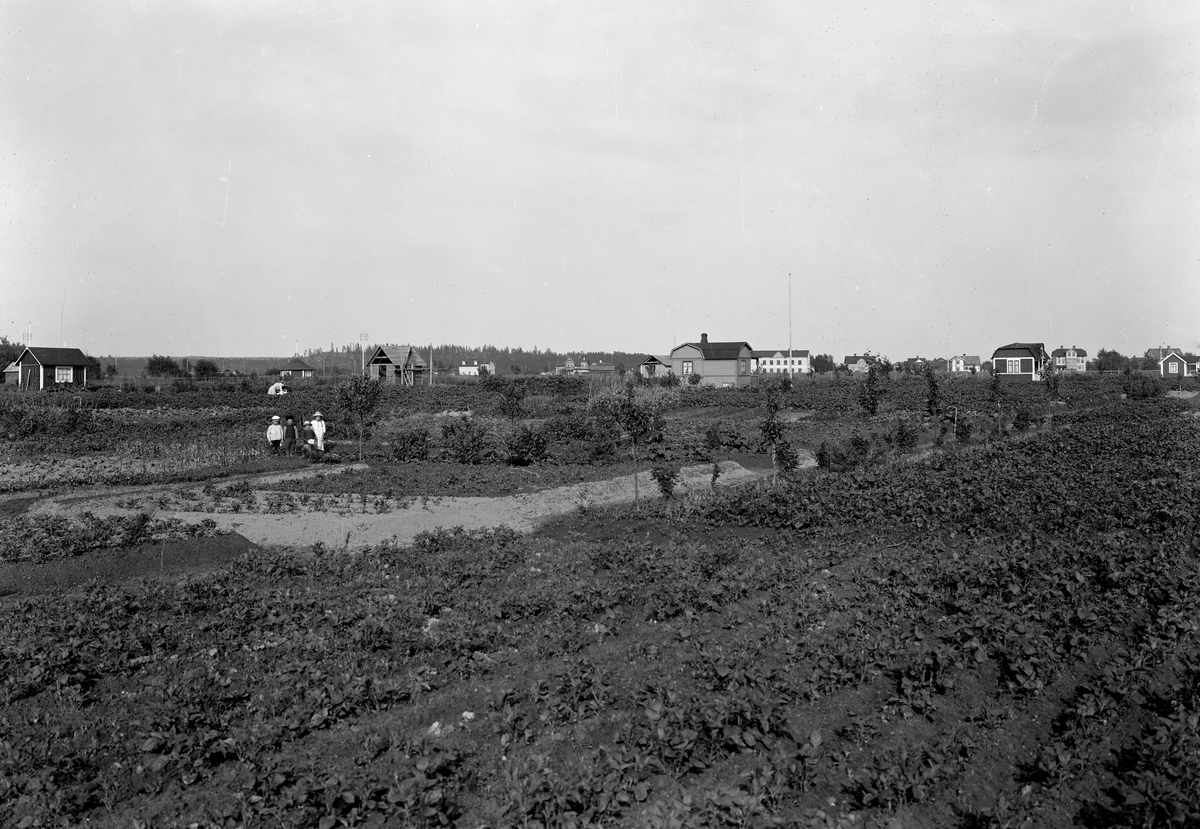 Kolonistugeområdet på Sundsta som flyttades till Kroppkärr inför bygget av brandstationen och Älvkullegymnasiet. Bilden tagen runt 1920.