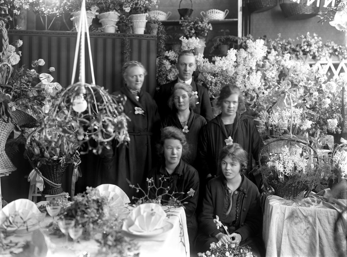 Blomsterhandeln Gullvivans personal i slutet av 1920-talet. Ett butiksnamn som fortfarande finns kvar i Karlstad.