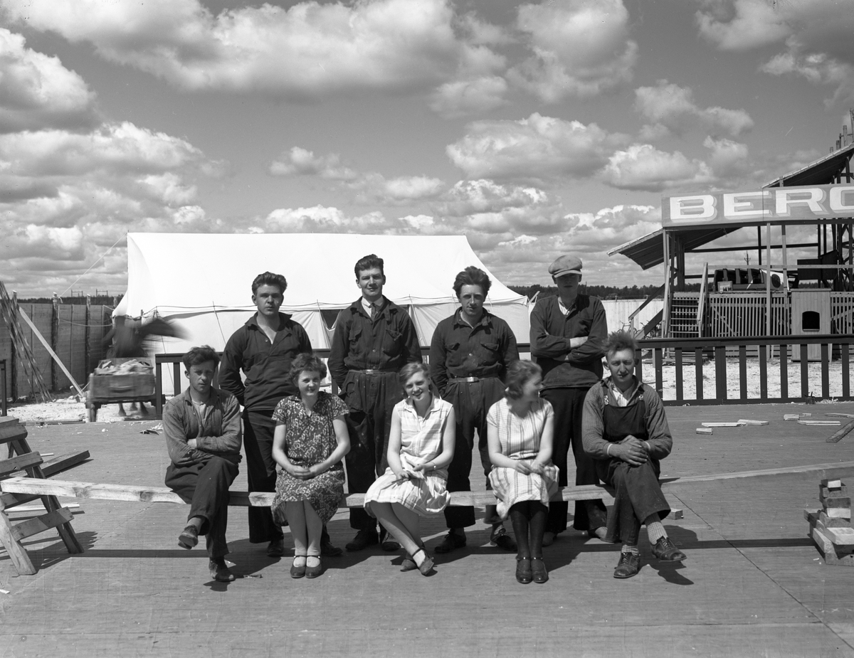 Bild från bygget av nöjesfältets attraktioner vid Wermlandsutställningen 1929.