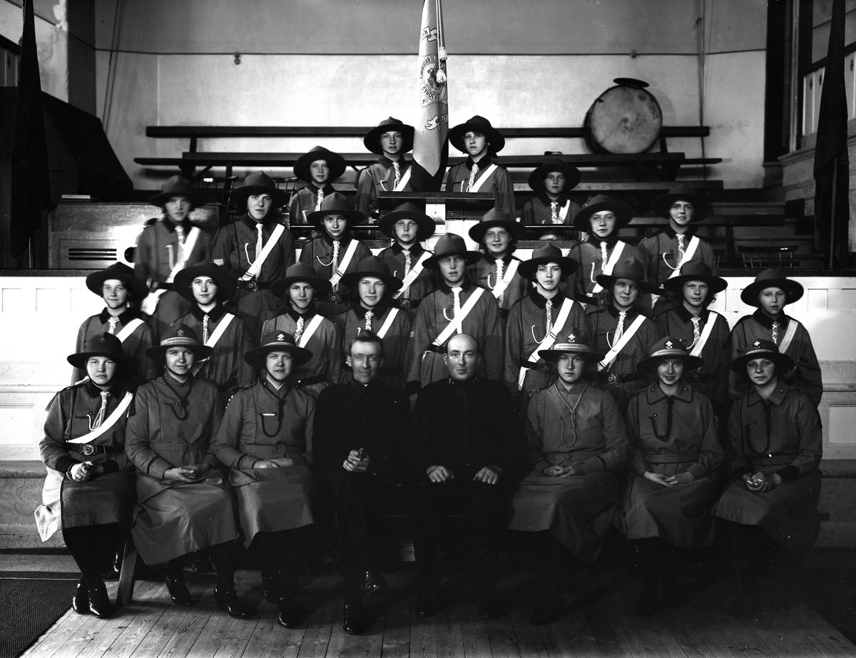 Frälsningsarméns flickscouter i den lokal på Mariedalsgatan som nu (2014) byggs om till bostäder.
