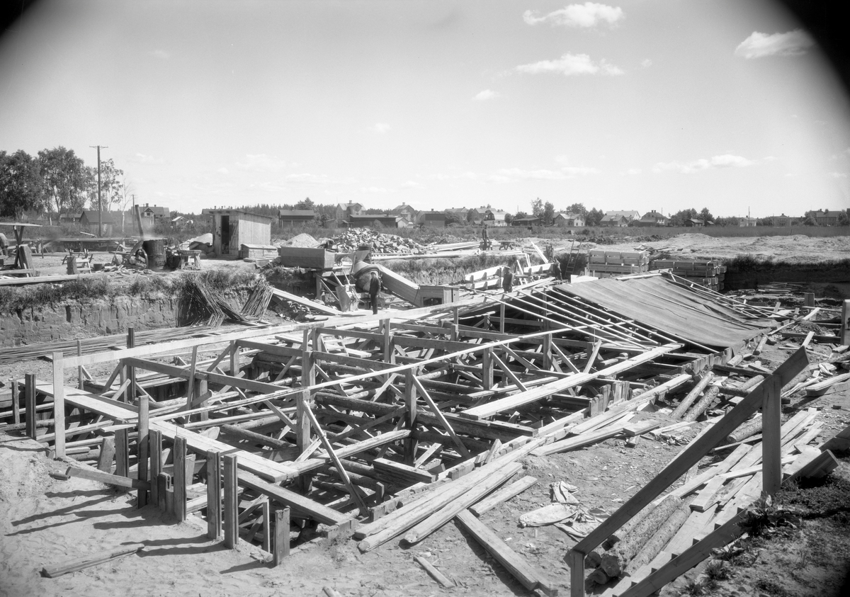 Företaget Wallin & Co bygger pumpstation och avloppsledningar på Hagaborg 1933.