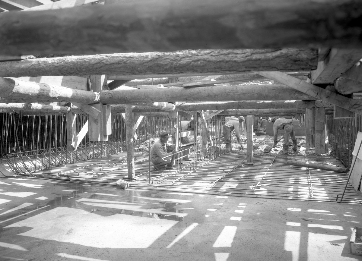 Bygge av pumpstation och avloppsledningar i Hagaborgsområdet. Bilden tagen 1933.
