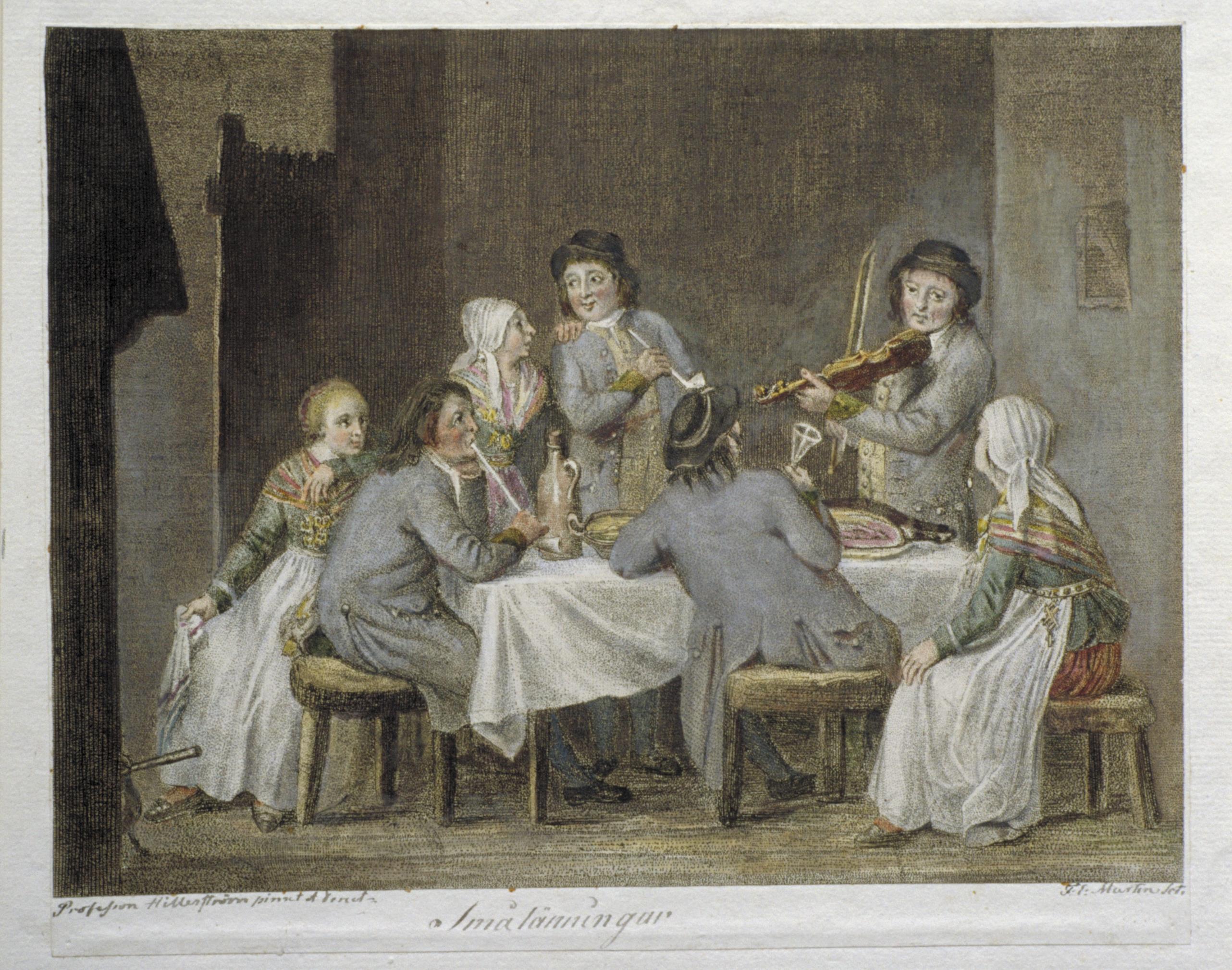 Akvarellerad punktgravyr av Fredrik Erik Martin efter Pehr Hilleström d.ä. (Socken, kommun och län kan inte anges säkert).
