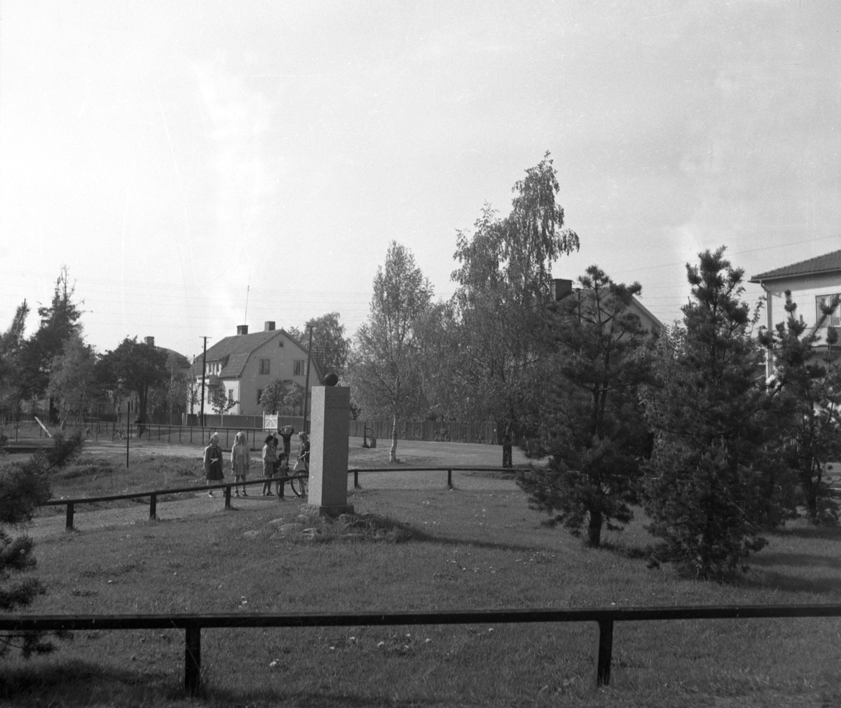Bild tagen på Tormestad i Karlstad vid platsen för minnesmärket där avlidna lantvärnsmän begravdes 1808. Fotot togs 1949.