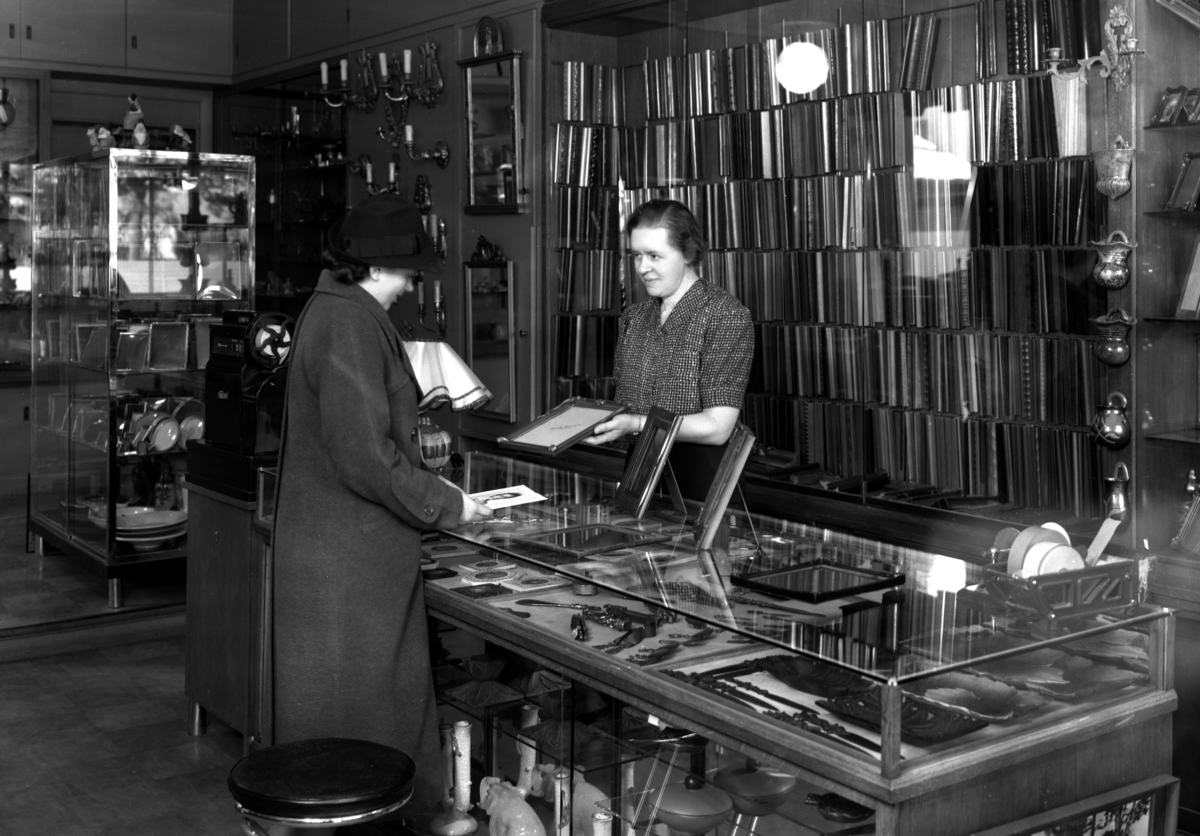 Bomans Ramaffär på Östra Torggatan 16 i kvarteret Väktaren. Bilden tagen 1939.