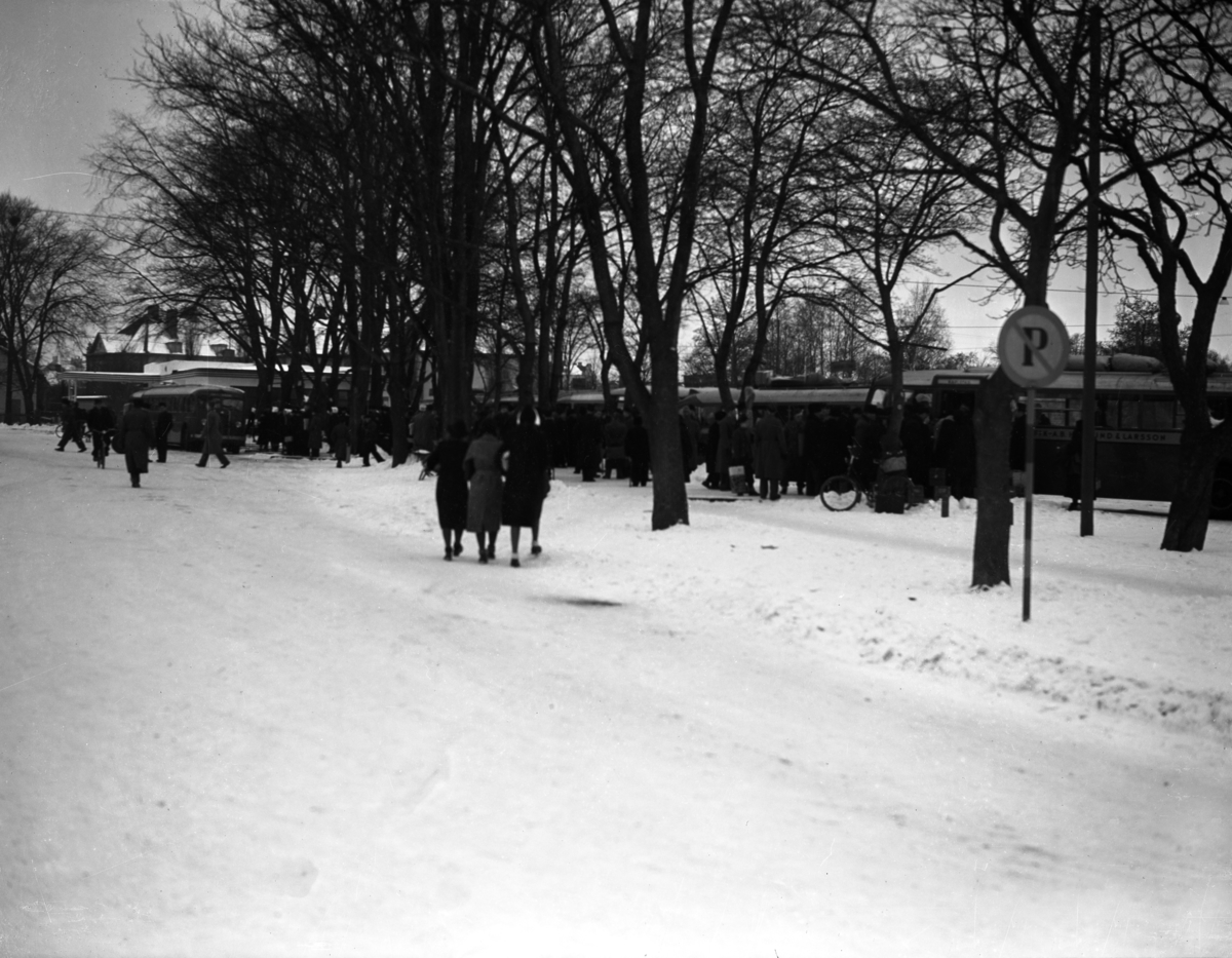 Busscentralen vid Norra Strandgatan på nuvarande bibliotekstomten.