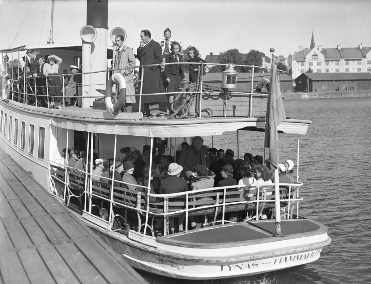 Karlstads-Tidningen arrangerar svamputflykt via båt till Hammarö år 1940.