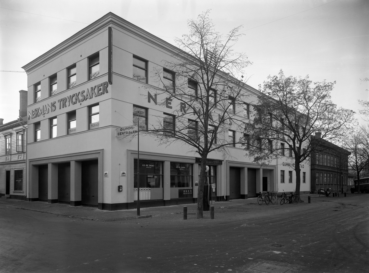 Nermans tryckeris fastighet på Östra Torggatan i slutet av 1930-talet.