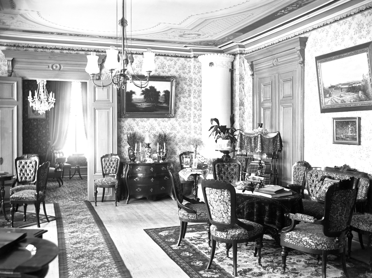 Hemma hos tobaksfabrikör J A Brattström i hans fastighet med adress Drottninggatan 24.