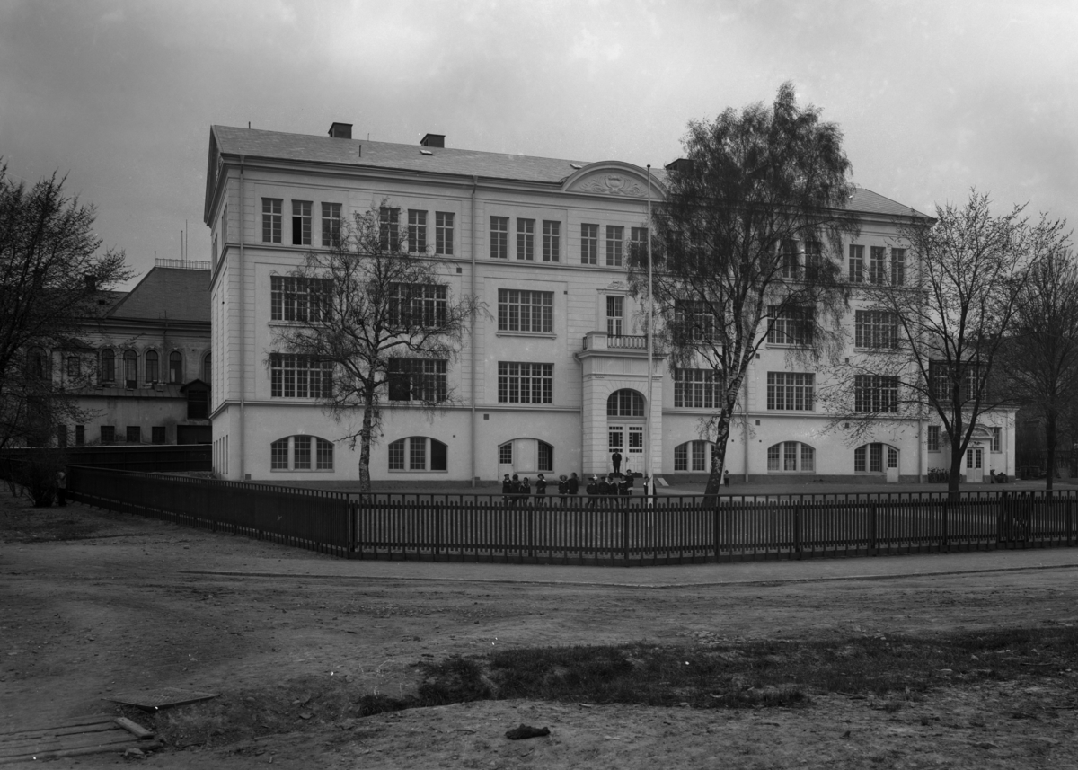 Flickskolan ca 1915 med gymnastiksal anslutande till norra gaveln.