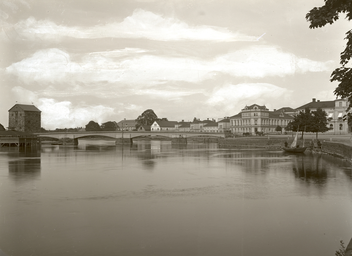 Vy tagen från Älvgatan i slutet av 1880-talet. Molnen är påbättrade vid kopieringen.