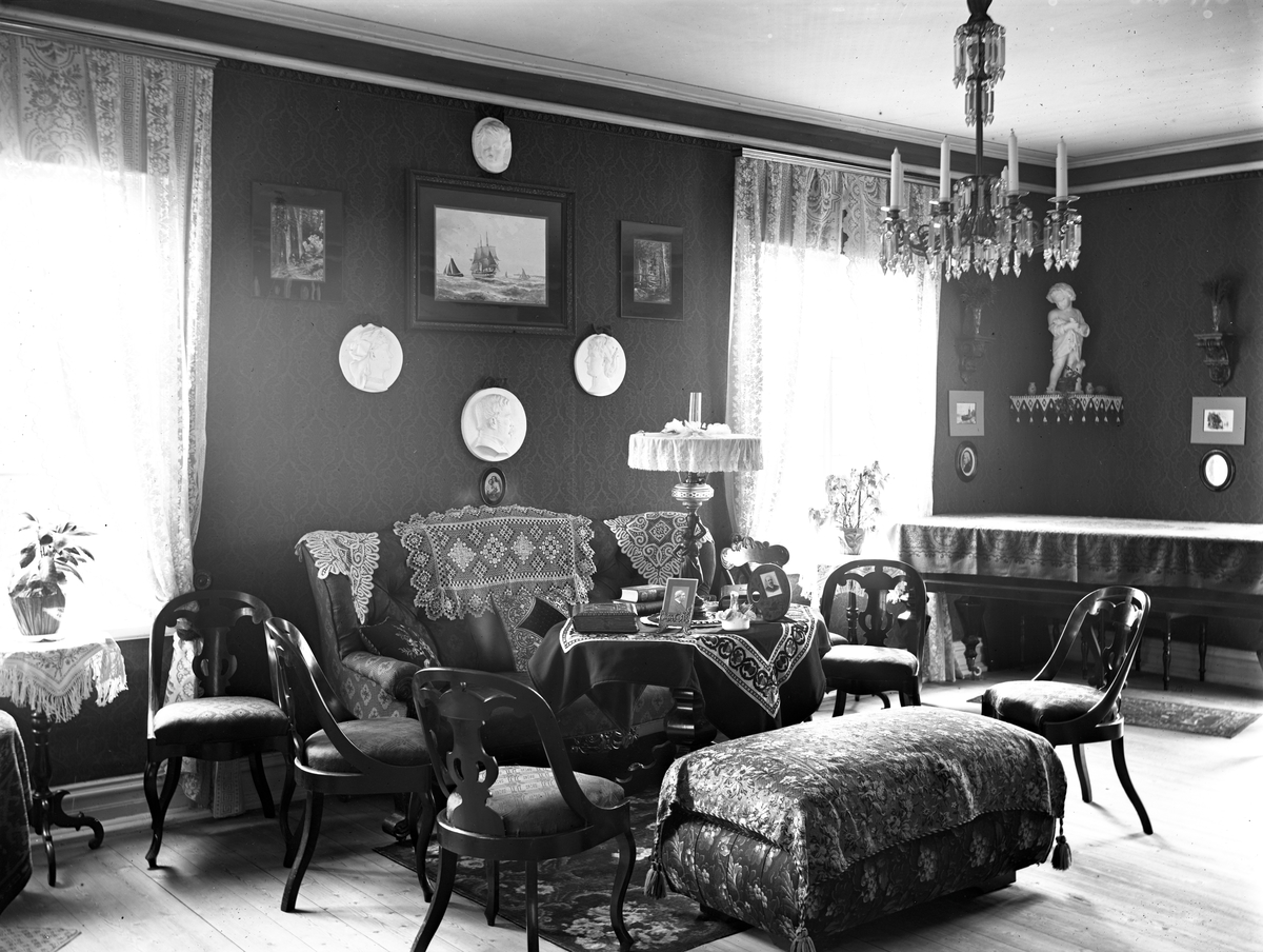 Interiör från förste lantmätare A F von Wachenfeldts våning. Huset revs 1993 och låg på den nuvarande adressen Västra Kanalgatan 9.