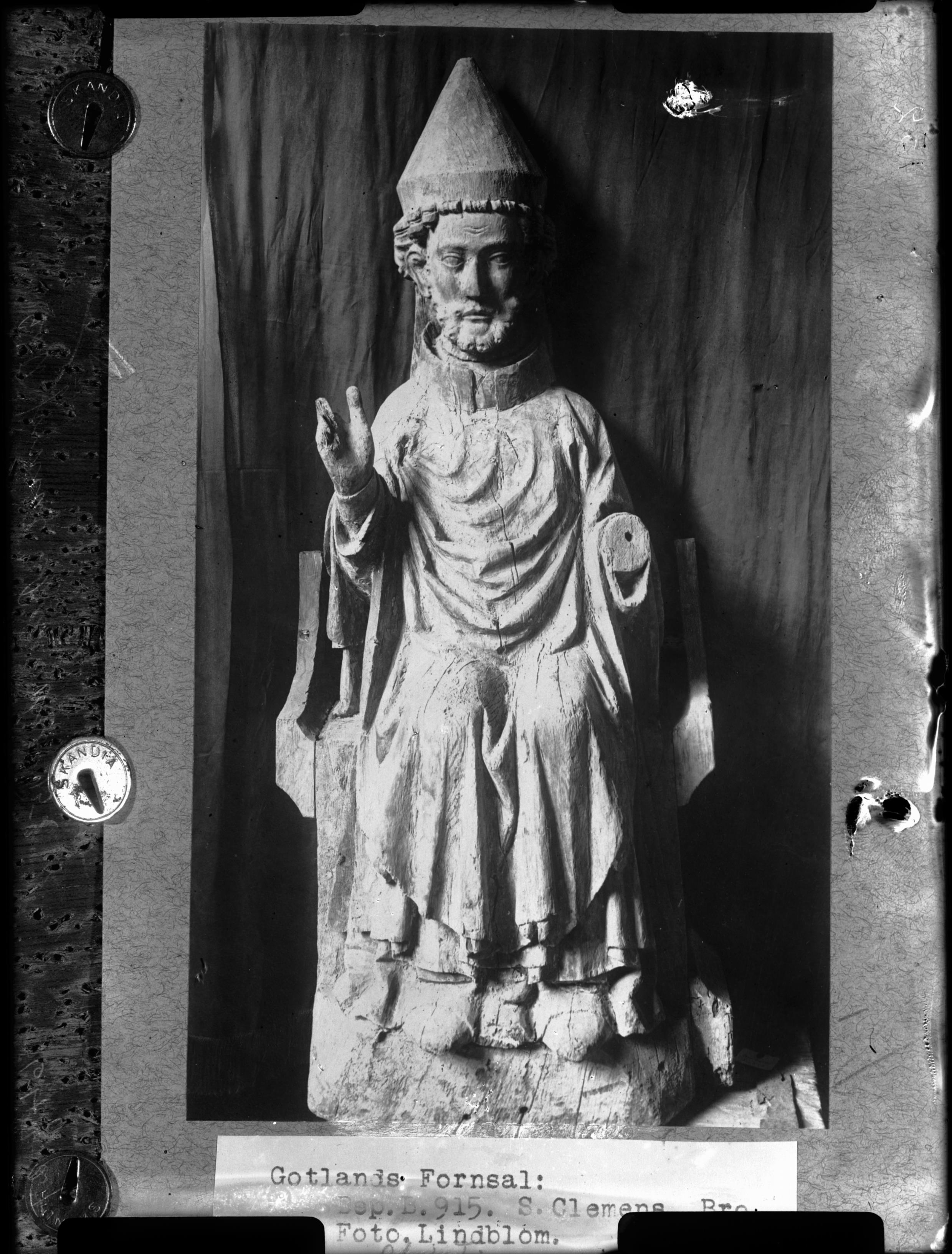Skulptur av trä framställande sittande påve. S:t Klemens?