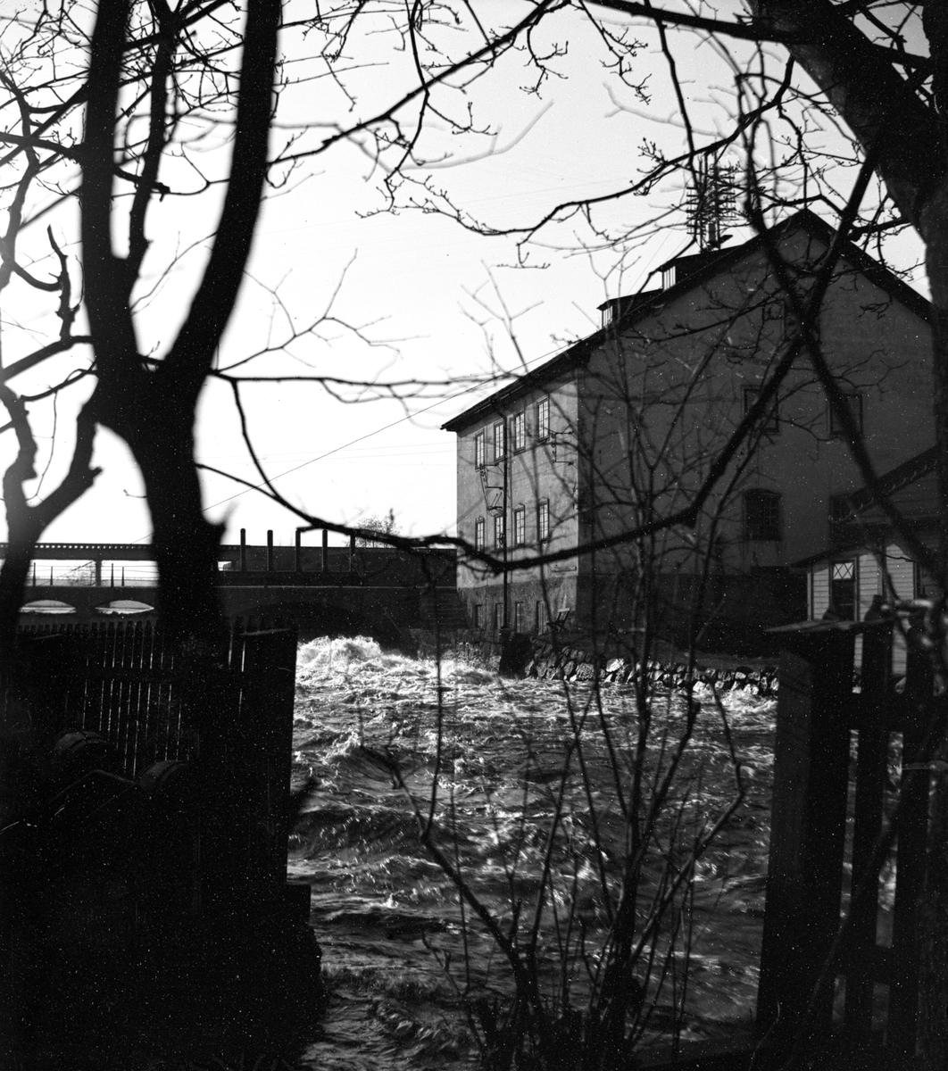 Kvarnen och Skillerälven på en bild tagen 1903. Prickigt original.