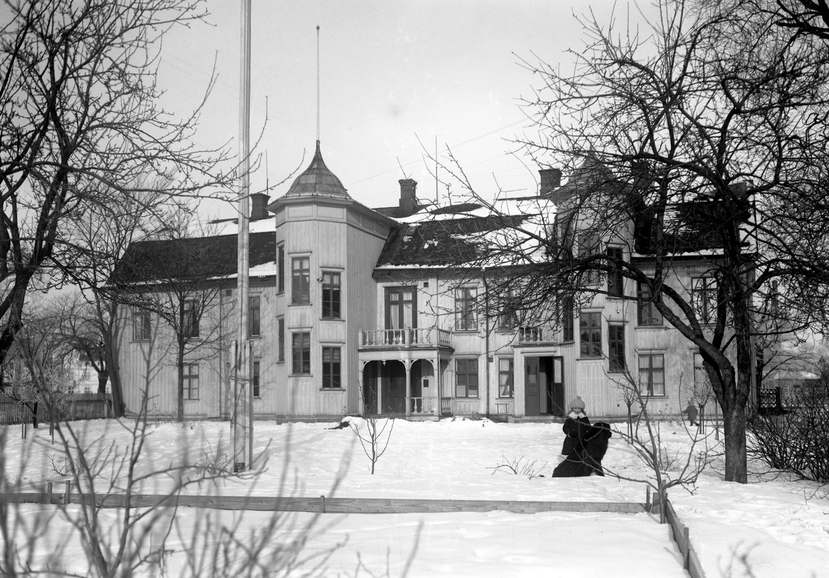 Grevegården inifrån kvarteret på en bild från 13 feb 1922. De båda trapphusen finns inte kvar idag.