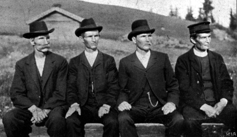 Fr.v. Henrik Olsson, Hästberg; "Juhola-Jussi" Johannes Jonsson; Johannes Olsson, Hästberg; Erik Jonsson, Juhola.