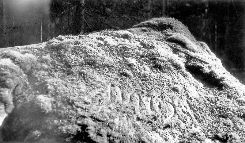 "Veteläinen-stenen" mellan Oppigården och Bråten, Medskogen.