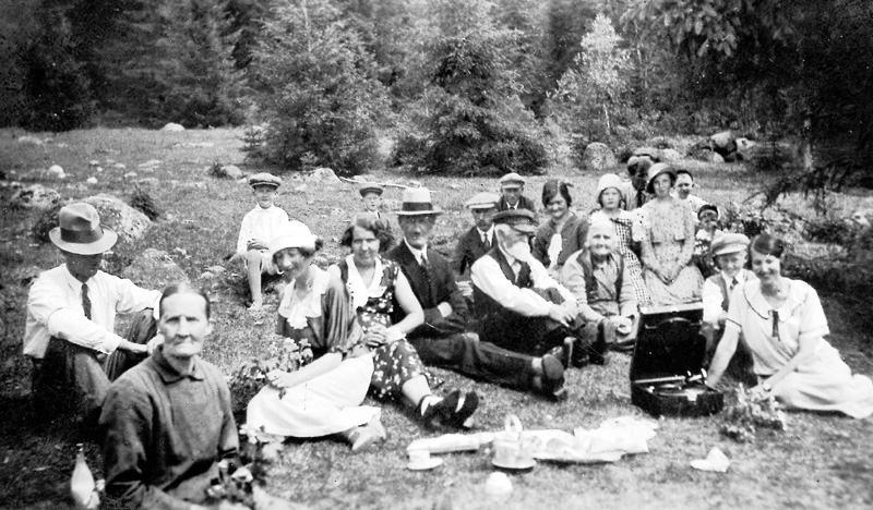 Andra raden: Viktor Viktorsson, Georg Halvarsson, Edvin Halvarsson, Per Halvarsson, Gerda Halvarsson, Linnea Halvarsson, Maj Jonsson, alla från Brattmon.