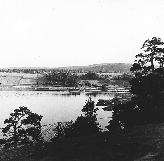 Vy från Kollsbergsudden mot Västanvik. S/S Selma Lagerlöf passerar.
